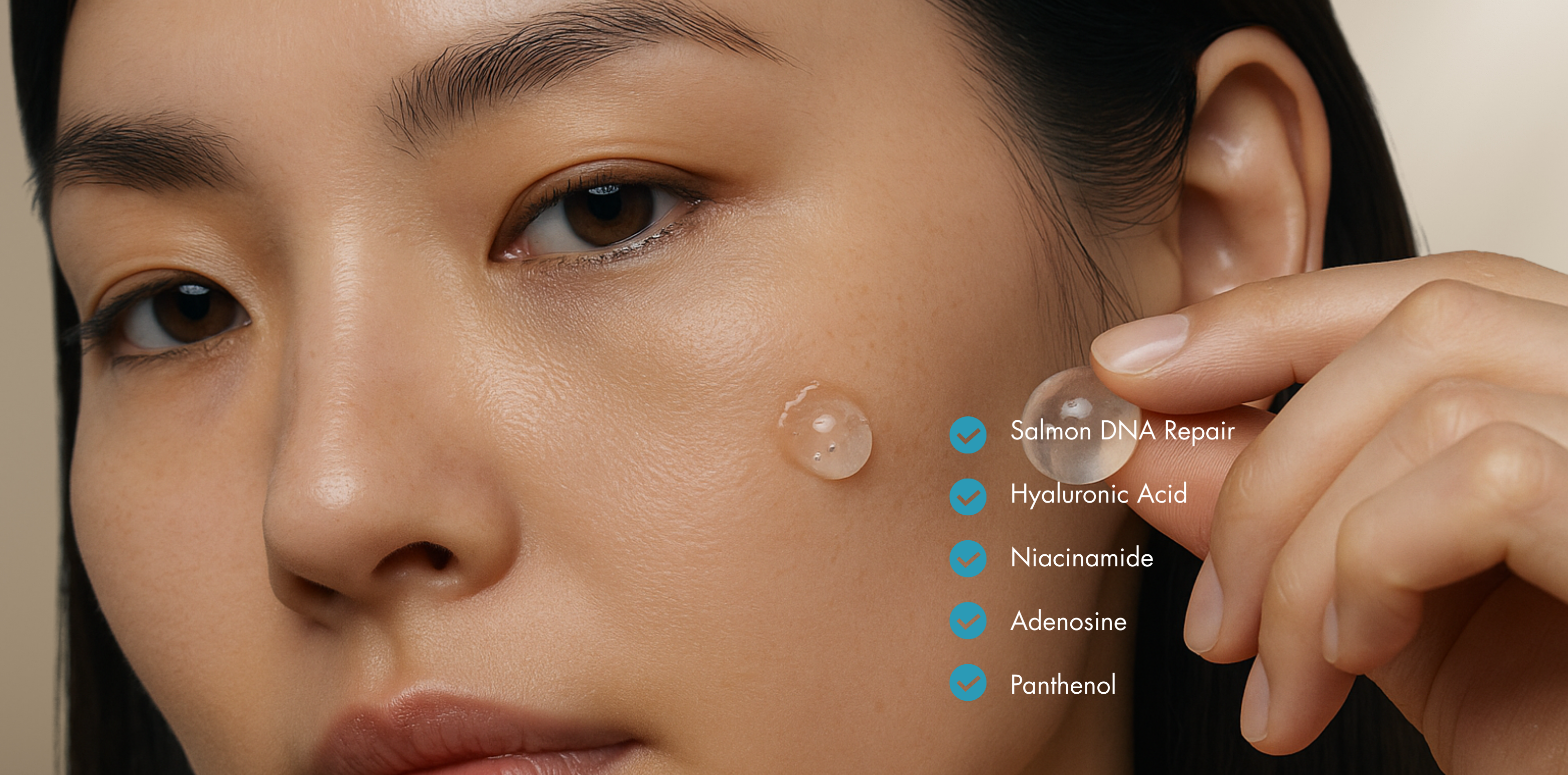 Our formula contains clinical-grade PDRN (Marine DNA), an ingredient used in Korean dermatology for skin regeneration.